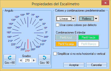 Allí podemos variar de forma ajustada el ángulo de la misma y también personalizar el perfil de color. Podemos usar uno de los perfiles de color predeterminados (azul, verde, naranja o blanco) o bien establecer nuestros propios colores de línea y de relleno.