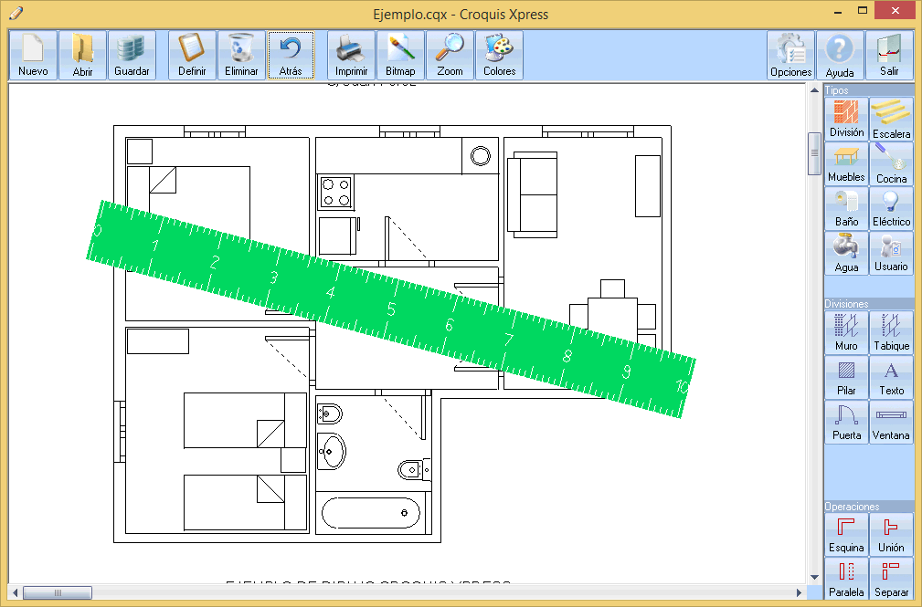 La regla que vemos a la derecha del área de dibujo es en realidad un pequeño escalímetro que podemos arrastrar a cualquier parte del dibujo y que nos permitirá medir sobre el propio croquis en sentido vertical u horizontal.