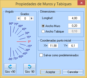 Podríamos haber mostrado sus propiedades mediante un doble clic en sus puntos de arrastre, pero como ya la tenemos seleccionada lo haremos pulsando el Botón Definir . El muro que hemos dibujado no tiene el ancho pretendido, pero lo editamos mediante un doble clik y modificamos su ancho a 0,15