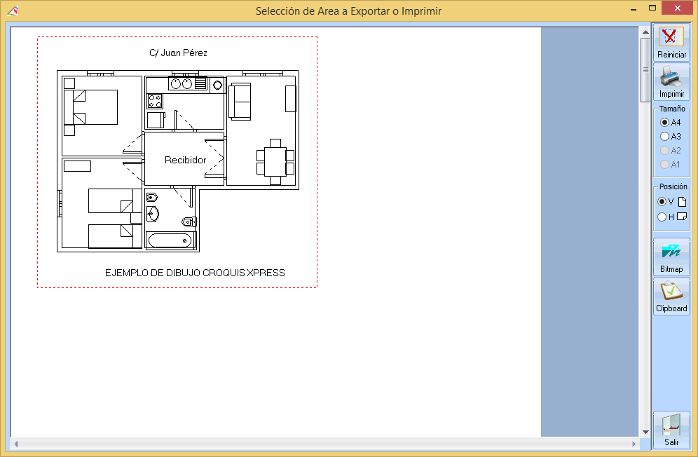 Croquis Xpress nos permite definir el área a imprimir simplemente dibujando un rectángulo alrededor de la zona deseada.