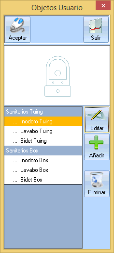 Para insertar un elemento en nuestro dibujo basta selecionarlo y pulsar Aceptar o bien hacer un doble click sobre el mismo.