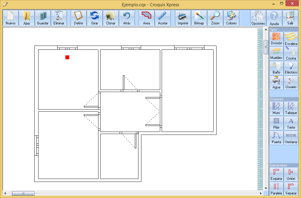 Evidentemente iniciamos el dibujo de la ventana con el botón ventana. Señalamos la pared y a partir de ahí todo es igual que en la puerta.