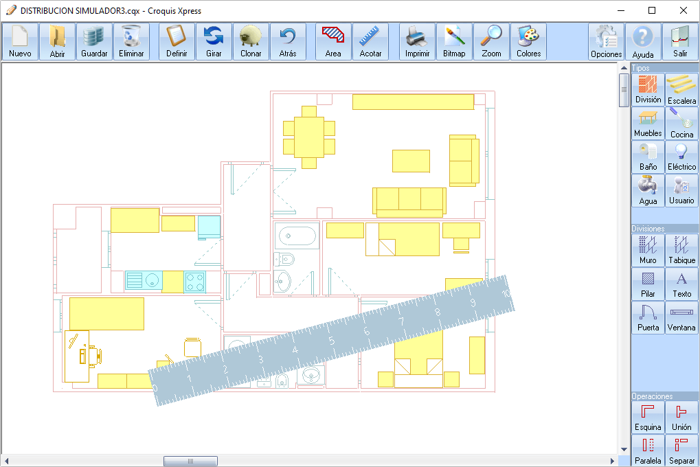 Dentro del programa tenemos todo lo necesario para realizar el plano de una vivienda o local de modo esquemático (Para ampliar información sobre el funcionamiento interno de Croquis Xpress nos remitimos a la ayuda del mismo). Permite dibujar y unir paredes, colocar puertas y ventanas, colocar mobiliario y aparatos prediseñados o bien diseñar nuestros propios bloques, permite calcular superficies, acotación automática, mover, clonar, eliminar o girar objetos directamente en pantalla, editar propiedades, usar perfiles de color, etc...