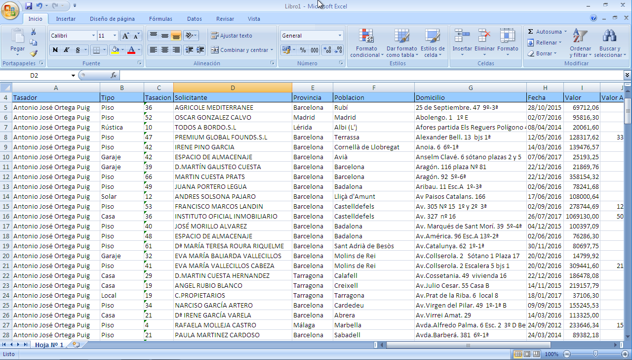 Esto nos permite enviar a una hoja Excel (es preciso tener instalado este programa de Office para poder hacer uso de esta funcionalidad) el contenido de la pantalla principal en forma de listado.